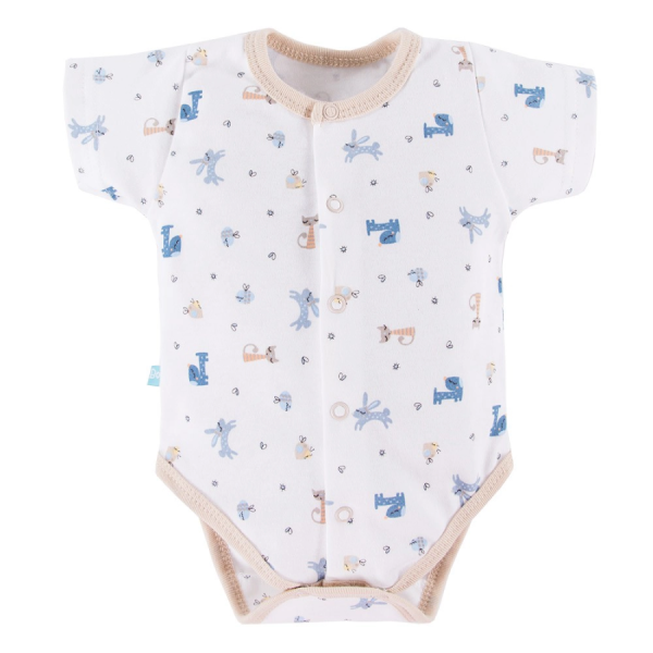Zīdaiņu bodijs ar īsām piedurknēm no augstas kvalitātes kokvilnas.