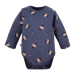 Skaists gaiši rozā bodijs ar garām piedurknēm no “Dogs&Spots” kolekcijas ir veidots no mīksta un pieskārienam patīkama 100% kokvilnas auduma, nodrošinot mazuļa komfortu visas dienas garumā. Bodijs ir rotāts ar elegantiem volāniem uz pleciem un jauku suņu rakstu, piešķirot tam rotaļīgu un mīļu izskatu. Piemērots mazuļa pirmajiem dzīves mēnešiem, tas ir praktisks un stilīgs risinājums, ko mammas bieži izvēlas kā ikdienas apģērbu.