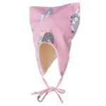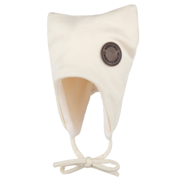 Cepure sasienama ar aukliņām, tāpēc tā mazuļiem jebkurā situācijā labi turas uz galvas un nosedz austiņas.