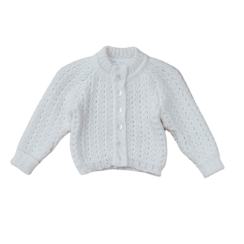 Šī adītā vilnas jaciņa ir radīta, lai nodrošinātu maksimālu siltumu un komfortu pašiem mazākajiem. Tā ir ideāla izvēle vēsākām dienām, garantējot, ka mazulis jutīsies omulīgi un pasargāts.