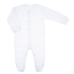 Mīksts kokvilnas rāpulis ar garām piedurknēm un slēgtām pēdiņām.