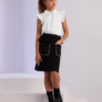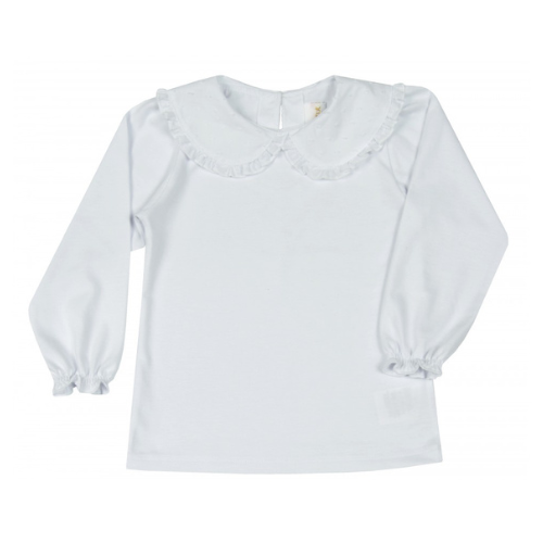 Meiteņu blūze ir ērta, jo ražota no kokvilnas trikotāžas auduma.