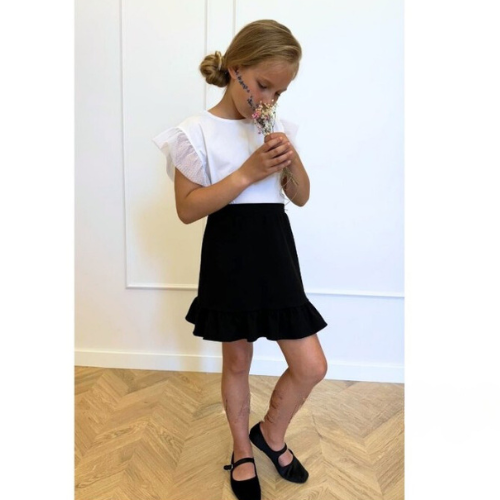 Stilīgi un eleganti melni meiteņu svārki ar volānu apakšmalā.