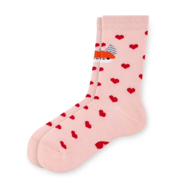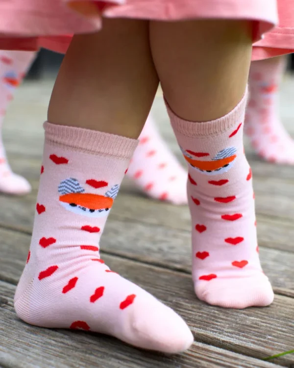 Mīļas TUTAS LIETAS bambusa zeķītes ar sirsniņām – rozā, elpojošas un īpaši maigas bērnu pēdiņām. Rotātas ar Lapsas tēlu. Ražotas Latvijā.