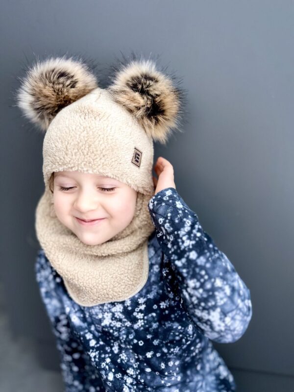Teddy materiāla struktūra apvienojumā ar rotaļīgiem dabīgās kažokādas bumbuļiem – šī ir perfekta kombinācija tiem, kas vēlas justies omulīgi un stilīgi. Materiāls ir izturīgs un viegli kopjams, tāpēc šis apģērbs kalpos ilgus gadus.