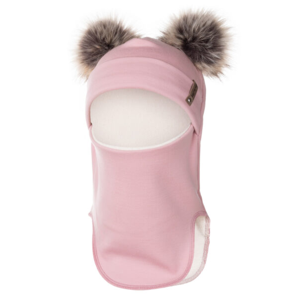 - Estētika: Cepuri rotā divi pūkaini mākslīgās kažokādas bumbuļi.