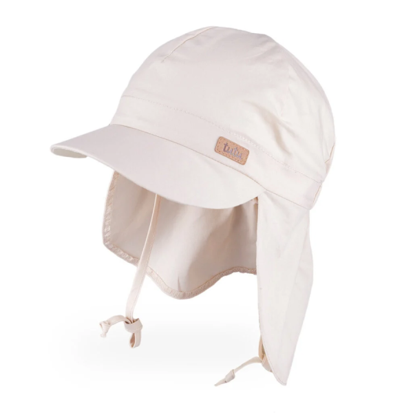 Kokvilnas cepure ar kakla aizsardzību, sasienama ar aukliņām – ideāla vasaras cepure bērniem. Pāns un viegls kokvilnas materiāls ar saules aizsardzības filtru UV+30. Ērta un piemīlīga bērnu cepure piemērota valkāšanai vasarā.