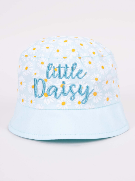 - Meiteņu vasaras cepure gaiši zilā krāsā ar margrietiņu rakstu