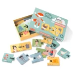 • Komplektā ietilpst: 24 kartītes, 4 metamie kauliņi (sarkans, dzeltens, zils, zaļš), kauliņu uzlīmes un spēles noteikumi.