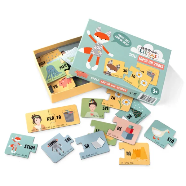 TUTAS LIETAS spēle “Lapsa un zilbes” ir aizraujošs veids, kā bērniem attīstīt pirmās lasītprasmes. Spēles mērķis – savienot pareizās zilbes, izveidot vārdu un pēc tam izlasīt teikumu. Katrai zilbju kombinācijai ir atbilstoša krāsa, kas palīdz bērnam vieglāk atrast pareizo pāri.