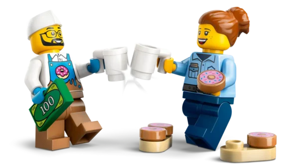 - Minifigūras: Iekļautas pārdevēja un pircēja minifigūras, lai uzreiz varētu sākt izspēlēt ainas.