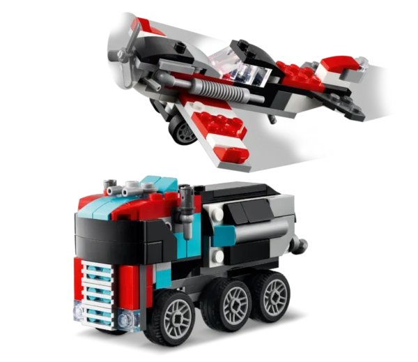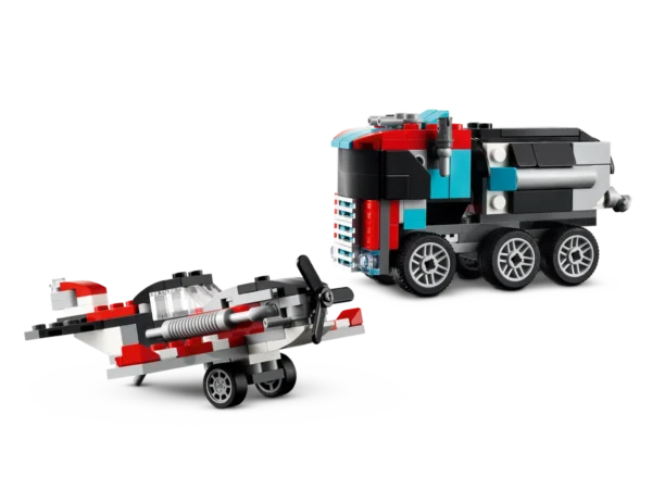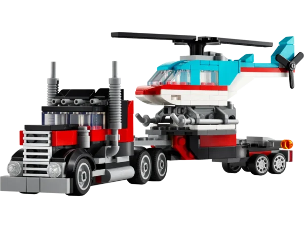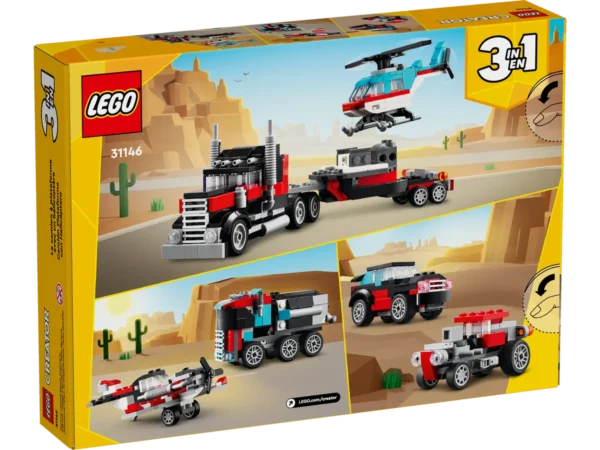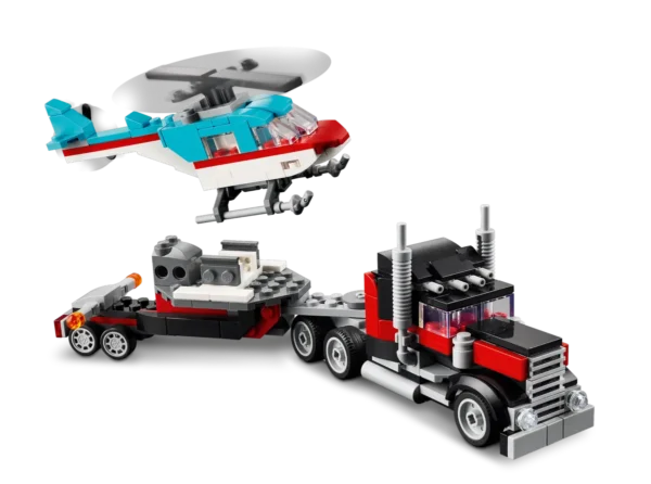 LEGO CREATOR 3in1 Kravas auto ar platformu un helikopteru (31146): Trīs dažādi transporta komplekti