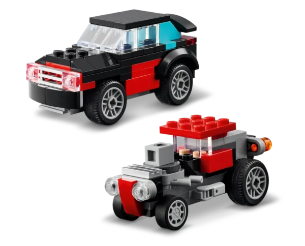 - Kustīgi rotaļu transportlīdzekļi: Katram modelim ir kustīgas daļas, tostarp rotaļu auto riteņi, LEGO® lidmašīnas propelleri un rotaļu helikoptera rotora lāpstiņas.