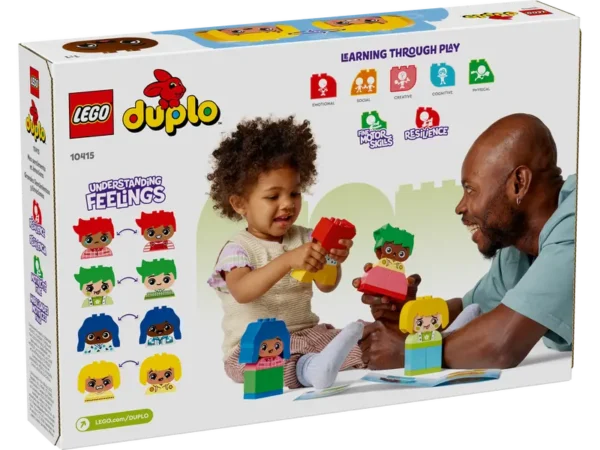Attīsti mazo bērnu emocionālo inteliģenci ar LEGO® DUPLO® My First Big Feelings & Emotions (10415) — 23 detaļu mācību komplektu pirmsskolas vecuma bērniem. Šis komplekts ļauj izpētīt emocijas, izmantojot 4 dažādas figūras, katru ar 2 maināmām sejas izteiksmēm, lai bērni var izteikt, kā viņi jūtas.