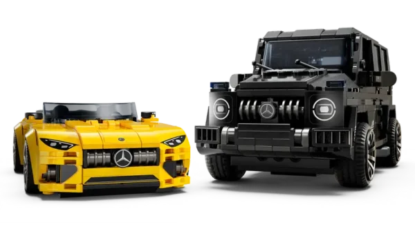 Iepazīsti iespaidīgo LEGO® Speed Champions Mercedes-AMG G 63 & Mercedes-AMG SL 63 (76924) dubulto auto komplektu, kas piemērots bērniem no 10 gadu vecuma, Mercedes-AMG cienītājiem un pieaugušajiem kolekcionāriem. Šajā komplektā ietilpst divi būvējami modeļi – ikoniskais melnais Mercedes-AMG G 63 un dinamiskais dzeltenais Mercedes-AMG SL 63 kabriolets.