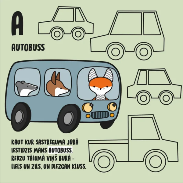 Katram burtam pievienots jauks, asprātīgs pantiņš, kas palīdz vieglāk iegaumēt un padara mācīšanos aizraujošu.