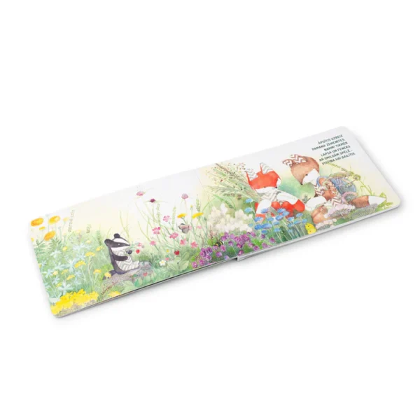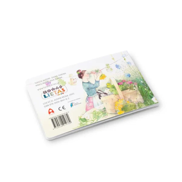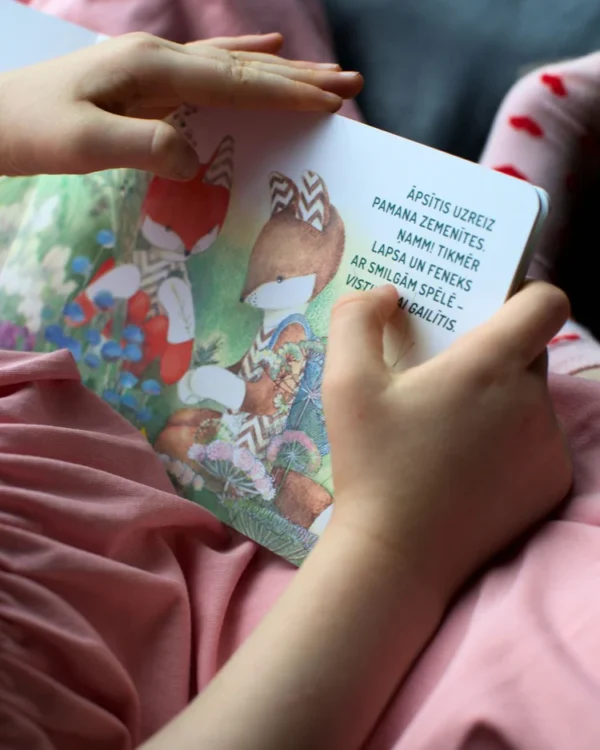 Grāmata ir izgatavota no izturīga kartona, kas piemērots mazām rociņām, ļaujot bērnam to droši šķirstīt patstāvīgi.