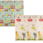 Paklājiņa augšpusē ir divi viegli satverami piepūšami rokturi, no kuriem viens čīkst, bet otrs rada zvanam līdzīgu skaņu, kad mazulis tos nospiež.