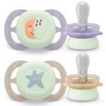 Philips Avent Ultra Soft ortodontiskais knupītis ir īpaši izstrādāts, lai saudzētu mazuļa jutīgo ādu. Mīkstais un elastīgais aizsargs pielāgojas vaigu formai, samazinot nospiedumus un ādas kairinājumu. Noapaļotais dizains nodrošina maigāku kontaktu ar ādu, savukārt 100% pārtikas kvalitātes silikona zīžamā daļa rada dabisku, mātes krūtij līdzīgu sajūtu. Ortodontiskā forma atbalsta dabisku mutes dobuma attīstību.