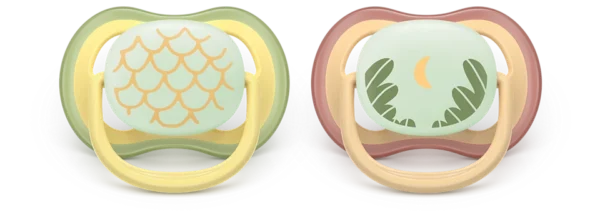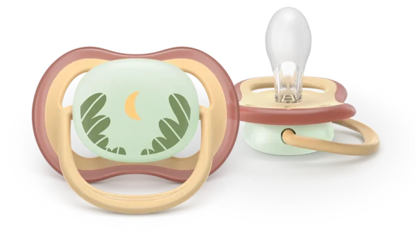 Ultra Air knupītis ar lielām gaisa atverēm un ortodontisku silikona zīžamo daļu. 98% mazuļu to pieņem, spīd tumsā un sterilizējams 3 minūtēs.